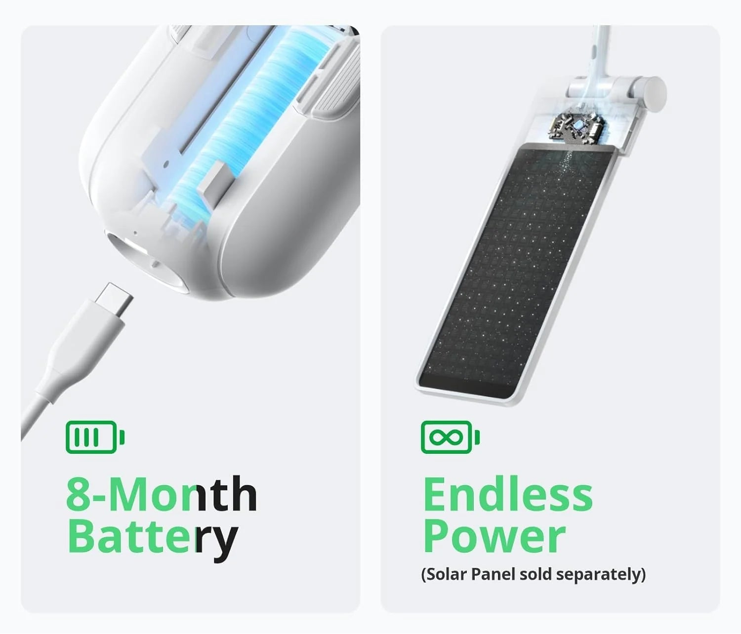 Enjoy up to 8 months of battery life on a single charge via USB-C — no constant recharging required. Pair it with the SwitchBot Solar Panel (sold separately) for continuous, eco-friendly power and worry-free automation all year long.